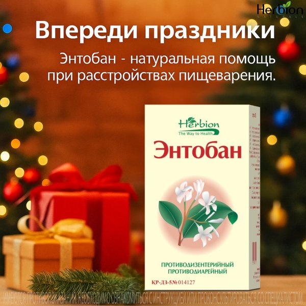 тов Но не спешите объявлять голодовку! Вот ваш план спасения: День 1: Легкие бульоны, рисовый отвар и травяные чаи День 2: Добавляем печеные яблоки, бананы и пробиотики День 3: Возвращаемся к обычному питанию, но без экстрима! А если кишечник уже объявил забастовку — на помощь придет ЭНТОБАН! Этот комплекс из 6 целебных растений: Мягко остановит диарею Успокоит «взбунтовавшийся» кишечник Восстановит комфорт и хорошее самочувствие Не дайте последствиям застолья испортить вам праздники! Встречайте Новый год во всеоружии! P.S. А у вас есть свои секреты восстановления после праздников? Делитесь в комментариях — вместе переживем все новогодние вкусности!