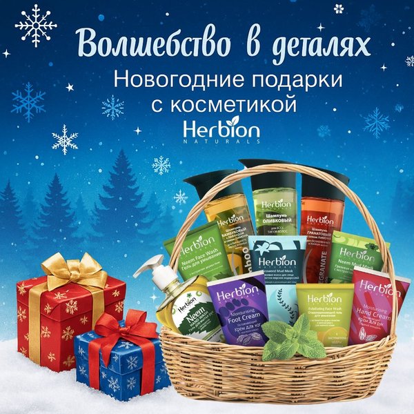 Волшебство в деталях: новогодние подарки с косметикой Herbion Создайте атмосферу настоящей заботы с нашими натуральными средствами! Погрузитесь в мир ароматов и нежных текстур: Гели для очищения с экстрактами целебных трав Грязевые маски для лица с экстрактом дерева ним и морскими водорослями Питательные кремы для рук и ног с маслами миндаля и какао Шампуни с алоэ вера, оливой, гранатом, имбирем, бамбуком для сияющих волос Каждое средство — это гармония природы и эффективности: Бережный уход для кожи и волос Натурал… — Читать дальше