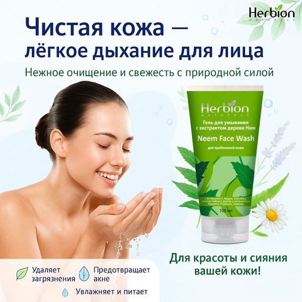 — бережно очищает, обладает противовоспалительным эффектом и предотвращает появление акне. А экстракты Моринги, Чайного дерева, Ромашки и Лаванды улучшают состояние кожи и защищают от высыпаний и чёрных точек. 4⃣ Не забывайте про увлажнение. После умывания кожа нуждается в заботе. Алоэ Вера в составе геля смягчает и питает, помогая сохранить природный баланс Регулярный ритуал “очищение + увлажнение” — это не просто уход, это маленькое проявление любви к себе Пусть кожа радует Вас свежестью, здоровьем и естественным сиянием вместе с Herbion
