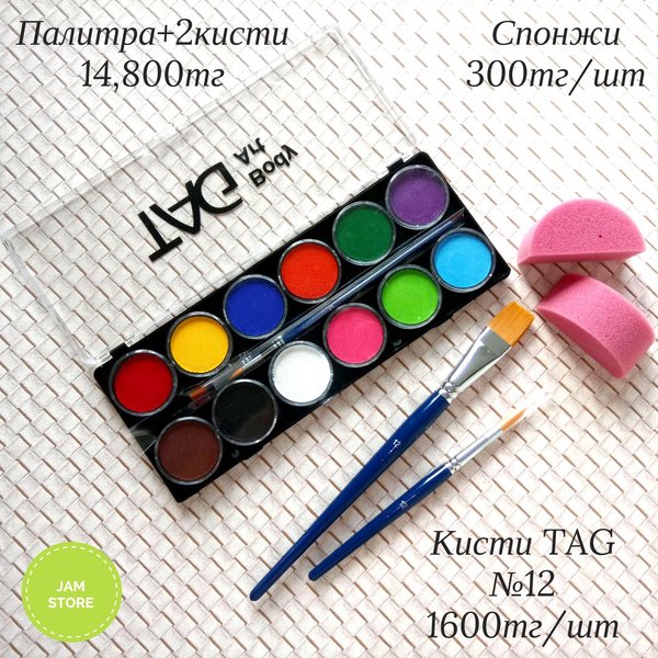 Аквагрим TAG body art палитры 12 цветов +2 кисти = 14.000 тг. В наличии. Доставка по Казахстану.