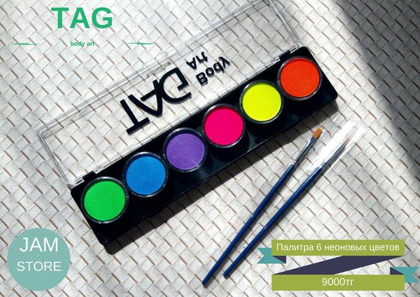 Аквагрим TAG body art Палитра 6 неоновых цветов +2кисти = 9000тг. В наличии. Доставка по Казахстану