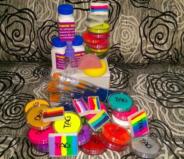 Яна Третьяк (01.01.1970): Аквагрим TAG body art Палитра 6 неоновых цветов +2кисти = 9000тг. В наличии. Доставка по Казахстану