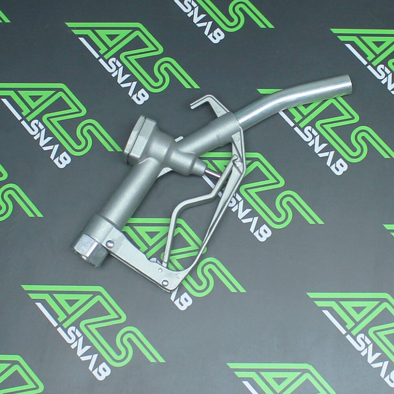 Кран раздаточный етр изготовлен из искробезопасного алюминиевого сплава, который так-же обладает хорошей коррозионной устойчивостью и достаточно высокой прочностью. Раздаточный носик представляет собой стальную трубку диаметром 24мм (диаметр условного прохода 19мм). нажимная скоба так-же изготовлена из алюминия. в нижней части рукояти оборудован язычок-держатель, и предназначен для фиксации нажимной скобы в одном из двух открытых положений. Данный раздаточный кран не снабжён функцией автоматического отстрела. Запорный клапан скрыт за съёмной крышкой что позволяет, в случае необходимости произвести разбор и осмотр клапанного узла. Для присоединения к напорному рукаву имеется резьба диаметром 32мм (1 1/4”). .