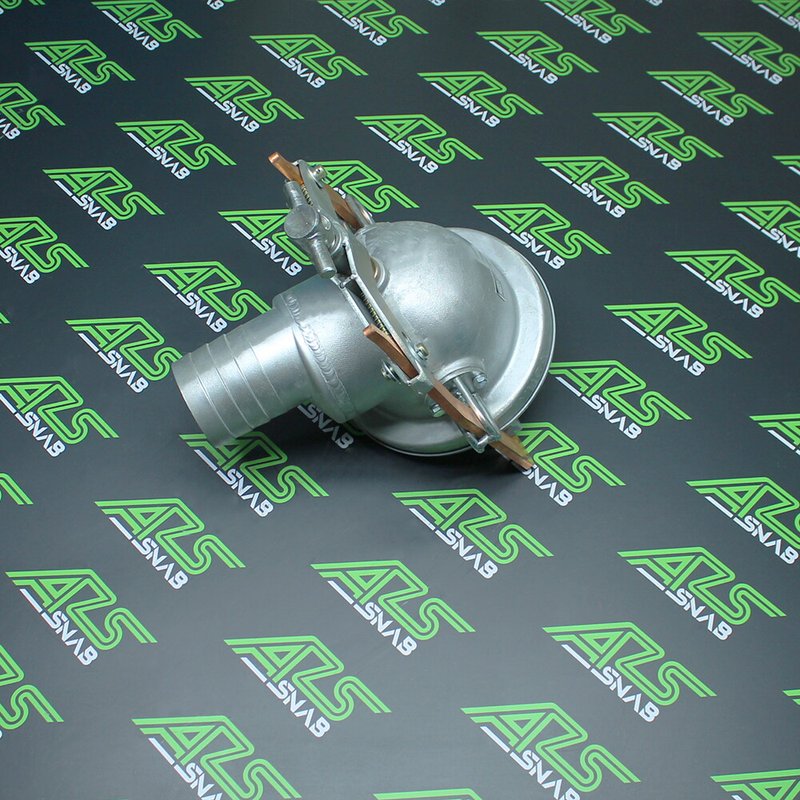Устройство нижнего слива унса-100 изготовлено из алюминия. Имеет климатическое исполнение ухл (умеренный и холодный климат до — 60֯С). Категория размещения 1 (эксплуатация на открытом воздухе, допускающая попадание прямых солнечных лучей и атмосферных осадков). Применяется в основном для проведения сливных операций с железнодорожных вагонов-цистерн. На вагоне данное устройство крепится при помощи двух крюков-захватов. Крюки оборудованы резьбовыми зажимами, зажимы в свою очередь имеют рукоятку для обеспечения удобства работы. Так же устройство слива оборудовано защитной крышкой. Наличие крышки позволяет исключить попадание загрязнений в устройство слива, и в дальнейшем попадание загрязнений в напорную часть рукава и трубопровода. Герметичность соединения с вагоном обеспечивает уплотнительное кольцо. .