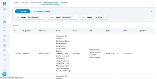 Теперь Вам доступен отчет по всем уведомлениям, которые были запланированы / или отправлены Вашим пациентам.