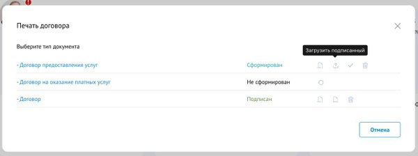 Сформировал — Распечатал — Загрузил подписанный или поставил статус «Подписан».