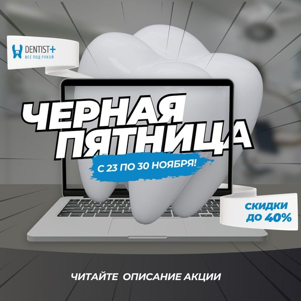 ️ ЧЕРНАЯ ПЯТНИЦА В DENTIST+ ️ Срок действия акции: С 11.11 – 18.11 2024 года. Для новых пользователей: • Подписка на 6-месяцев: -20% • Подписка на 12-месяцев: -30% Для текущих пользователей: • Подключение доп. опций: -40% Доп. опции: Склад, CRM, Ассистенты, доп. врач., WhatsAPP, Бонусная система Cash Back. Ограничения: • На последующие продления скидка не распространяется. • На платежи за хранение данных, для тарифов версии 1.0 — скидка не распространяется • Доп. опцию можно подключить только на срок основной подписки
