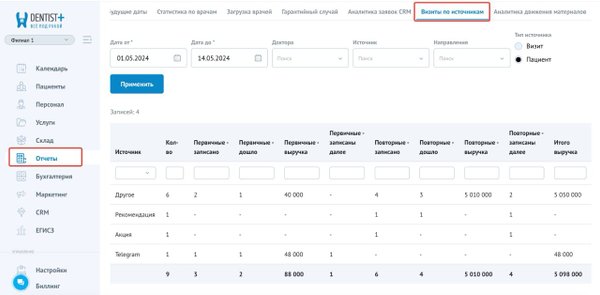 Отчёт по эффективности рекламы и удержания пациентов в стоматологии | Dentist Plus 2.0