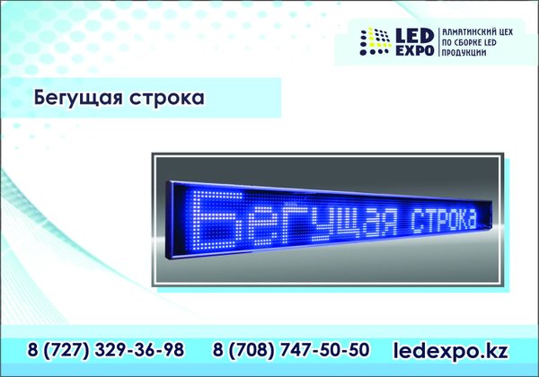 ↪ Led Expo — светодиодная продукция Казахстан Бегущая строка – это инновационный тип динамической рекламы, позволяющий донести до клиентов информацию об услугах, ассортименте, акциях.