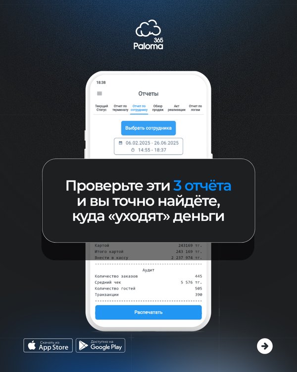 Paloma365 — единая система для дистанционного контроля сети: продажи, остатки, кассовые смены и аналитика в реальном времени прямо с телефона.