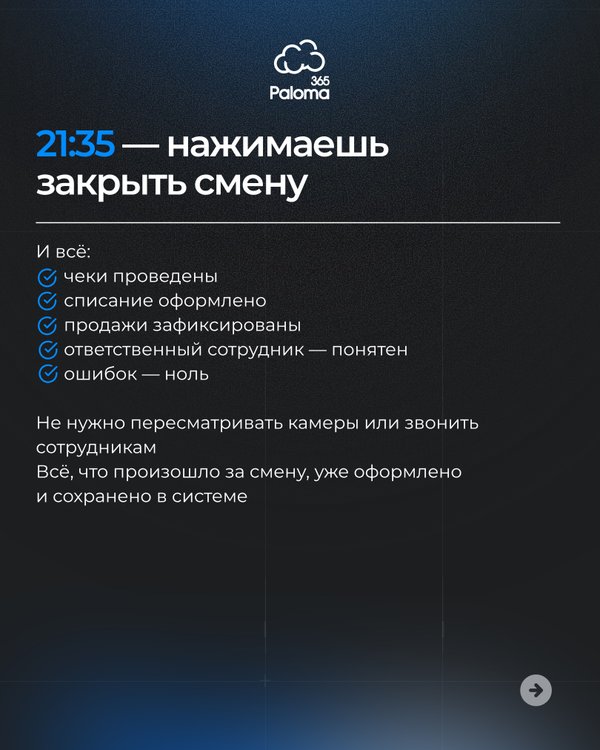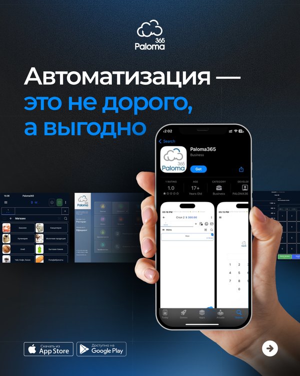 Автоматизация с Paloma365 помогаетсократить потери, ускорить обслуживание и взятьфинансы под полный контроль. Гибкие тарифы,простое подключение и быстрая окупаемость делают систему доступным инструментом для роста эффективности бизнеса. Наш колл-центр: без выходных с 10:00 до 19:00