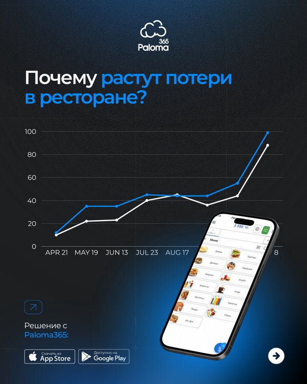 Автоматизация помогает ресторанам избежать скрытых потерь: ошибок в калькуляциях, неверных списаний и неточностей персонала. Paloma365 объединяет склад, кухню и аналитику в единую систему, чтобы финансовая картина была точной и управленческие решения — на основе фактов, а не предположений. Наш колл-центр: без выходных с 10:00 до 19:00