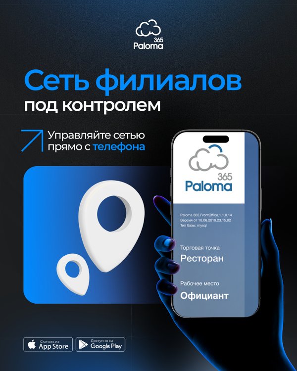 Управляйте сетью филиалов через Paloma365: все точки в одной системе, единые отчёты, онлайн-контроль продаж и остатков. Централизованные данные, удобная аналитика и полный обзор бизнеса — даже при десятках точек. Наш колл-центр: без выходных с 10:00 до 19:00