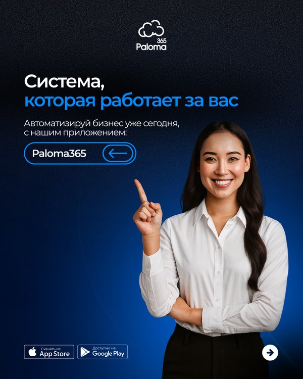 Paloma 365-бұл сіздің бизнесіңізді тиімді етіп басқарудың кілті! Біздің өнім жұмысты автоматтандыруға көмектеседі. Бұл сіздің бизнесіңізді дамыту және кеңейтуге үлкен мүмкіндік береді. Paloma 365 мынадай мүмкідіктерге жол ашады: — Операцияларды толық бақылау — Уақыт пен ресурстарды үнемдеу — Анализ жасауға ыңғайлы құрал — Кез келген уақытта қолдау көрсету Біз сіздің бизнесіңіздің жұмысын одан да тиімді етуге көмектесеміз!