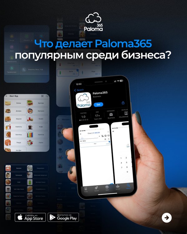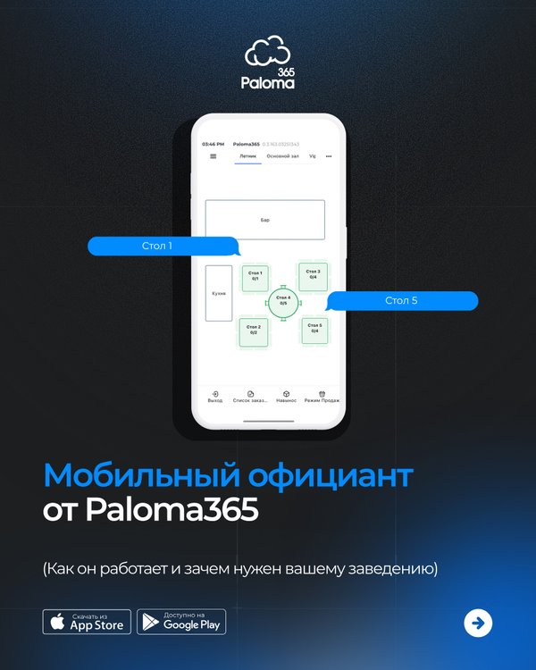 ли с легкостью ориентироваться — добавление картинок в меню для быстрого поиска — печать этикеток — учитывать рабочее время сотрудников Чтобы протестировать систему Paloma365, переходите по ссылке paloma365.com и оставляйте заявку, наши менеджера подберут индивидуальное решение для особенностей вашего бизнеса.