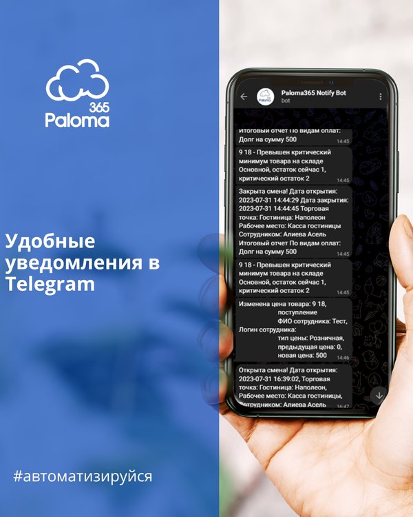 У вас нет времени контролировать работу сотрудников, смотреть отчеты, видеть остатки продуктов и многое другое У нас есть решение! Если вы пользуетесь Paloma365, то вы можете подключить бесплатный Телеграм бот, благодаря которому, вы всегда будете в курсе того, что происходит с вашим бизнесом из любой точки мира. Основная проблема, которую решает телеграм бот – это то, что не нужно следить за тем, что происходит в заведении. Система сама уведомит вас об опасных операциях, срочных или важных событиях. Автоматизируйтесь вместе с Paloma365 и упра… — Читать дальше
