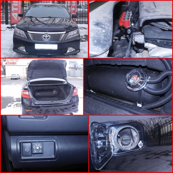 Установка ГБО на Toyota Camry Год выпуска — 2012 Объем — 2494. ---------- Автовладелец выбрал цилиндрический баллон объемом — 65 литров. Полная заправка баллона газом составит 55 литра —-------- Плюс еще одни экономичный и более экологичный автомобиль на дорогах Алматы Телефоны:;;;. Адрес: 1) Рыскулова 57 В/2 (Головной офис). 2) Хан Шатыр 287 (пересечение Рыскулова — Момышулы. Вторая точка)