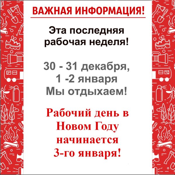 Уважаемые клиенты! Эта ПОСЛЕДНЯЯ РАБОЧАЯ неделя! Если вы планируете приехать к нам на сервис или на консультацию просим вас успеть до конца этой недели! 30 — 31 декабря, 1—2 января мы отдыхаем! Рабочий день в Новом 2019 году начинается 3-го января! __________________ Адрес: 1) Рыскулова 57 В/2 (Головной офис). 2) Хан Шатыр 273 А/1 (пересечение Рыскулова — Момышулы. Вторая точка)