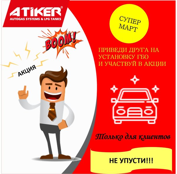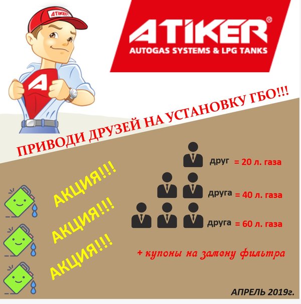 Сезон Весенних Акции продолжается в ATIKER!!! Уважаемые клиенты приводите друзей, коллег, соседей на установку ГБО!!!