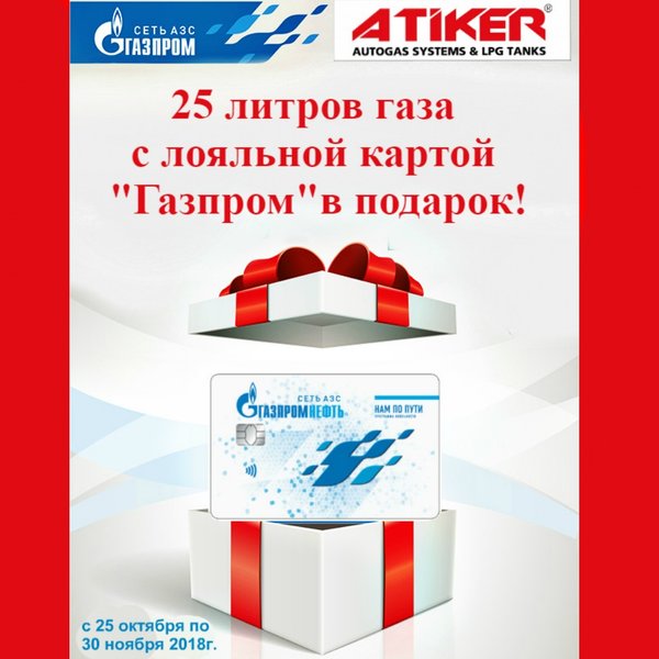 ◾С 25-го по 30 ноября в компании «Atiker.Asia„проводится акция «Осенняя экономия с Авто-газ“ При установке ГБО Вы получаете в подарок лояльную карту „Газпромнефть“ с первой бесплатной заправкой газа на 25 литров!