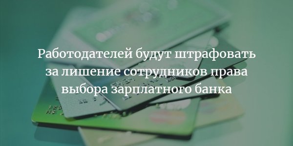 После принятия закона работодателям, препятствующим сотрудникам выбрать кредитную организацию для перечисления зарплаты, будет грозить такая же ответственность, как за «зарплатные» нарушения. Последние могут обернуться предупреждением или штрафом. Штраф за подобные нарушения уже сейчас для должностных лиц составляет от 10 тыс. до 20 тыс. рублей, а для юридических — от 30 тыс. до 50 тыс. рублей. Напомним, что работники имеют право выбирать «зарплатный» банк не только непосредственно при приеме на работу, но и менять его перед каждой зарплатой. Д… — Читать дальше