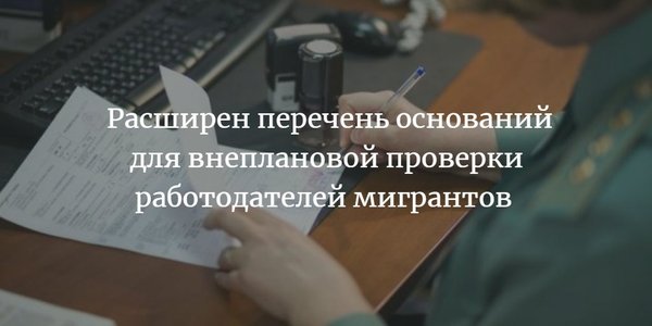ьное оформление. 2) Заключение гражданско-правового договора, в том случае если им регулируются трудовые отношения с иностранцами. 3) Нарушение со стороны работодателя норм трудового законодательства, а также охраны труда. А значит, если Трудовая инспекция получит обращение об этих нарушениях, это будет являться существенным поводом для проведения внеплановой проверки организации. Помимо этого, с 2018 года проведение внеплановой проверки стало возможно без уведомления предпринимателя и согласования с прокуратурой. Узнать подробнее об этих изменениях можно в ч.6 и ч.7 ст. 360 ТК РФ. Поэтому, уважаемые работодатели, будьте бдительны! Чтобы внеплановая проверка не застала вас врасплох, тщательно следите за документами ваших работников и изменениями в законодательстве. Если вы не уверены, что оформили иностранных работников правильно и их документы в порядке, обратитесь к специалистам компании «Ваш Кадровый Советник», они обязательно ответят на все ваши вопросы, подробнее на сайте: