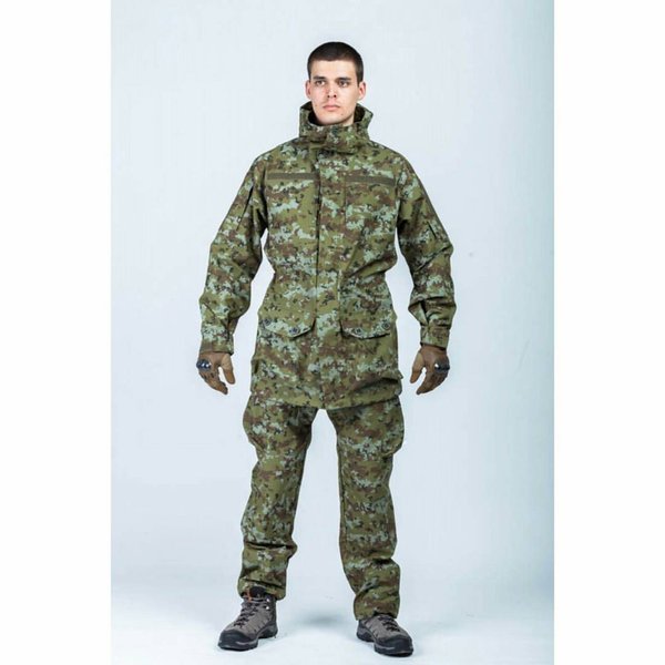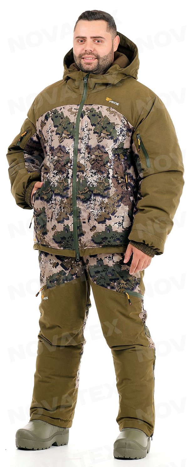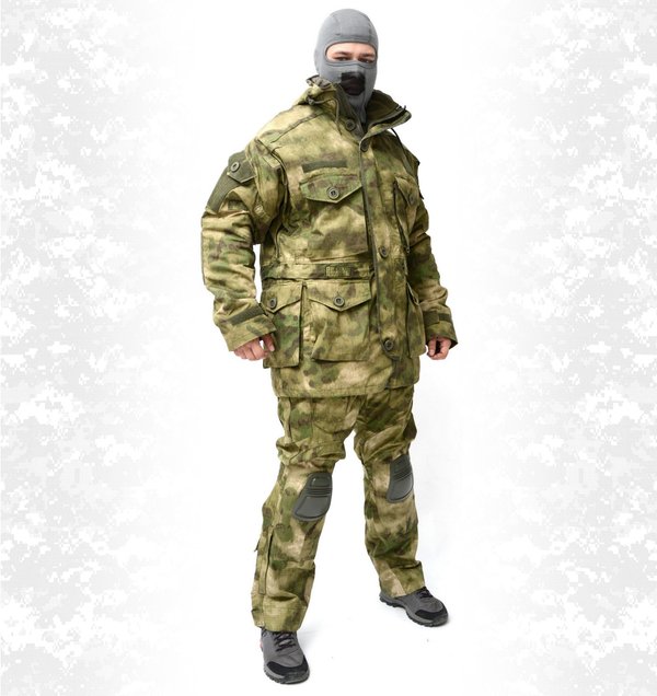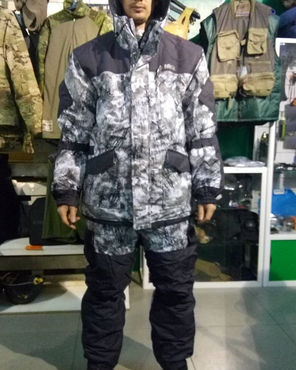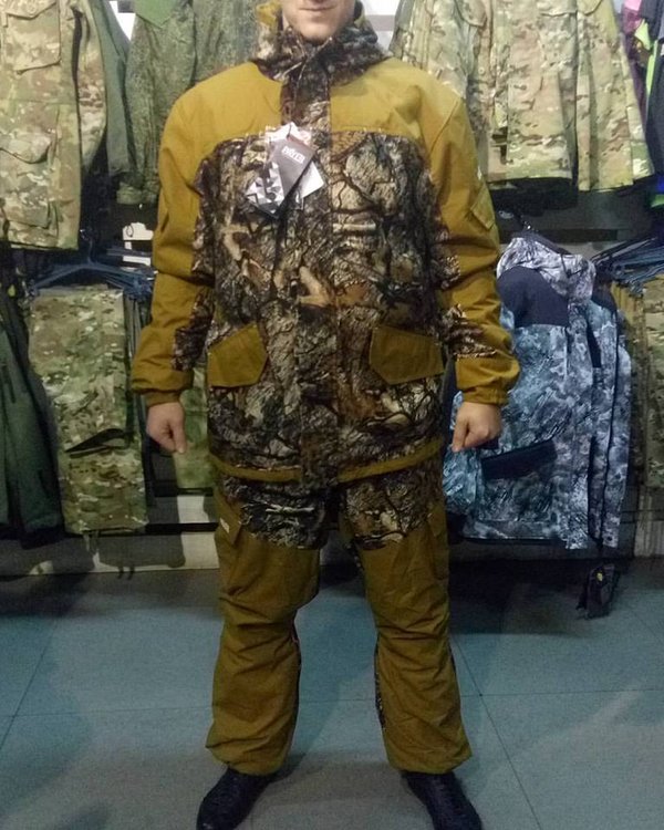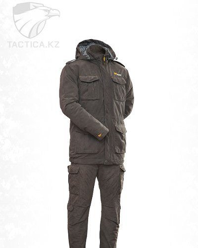нь» состоит из куртки и брюк на подтяжках. Отличается специальным анатомическим кроем, характерным для данной линии одежды. Он не стесняет движений, дает свободу перемещения в условиях пересеченной местности. Верхний слой изготовлен из современной мембранной ткани «Алова», обладающей отличными ветро- и влагозащитными свойствами, подкладка из мягкого гипоаллергенного флиса обеспечивает комфорт и тепло. Места повышенного износа имеют дополнительное усиление мембранной тканью «кошачий глаз», которая не пропускает влагу снаружи, отводит ее изнутри и обладает повышенной износостойкостью. Удлиненная куртка застегивается на молнию с двумя бегунками и двойную ветрозащитную планку на кнопках. Капюшон регулируется по объему и по овалу лица. Большие нагрудные карманы с флисовым подкладом предназначены для согрева рук. Нижние карманы куртки, нарукавные и набедренные карманы застегиваются на магниты, что позволяет пользоваться ими во время охоты без риска спугнуть добычу. Низ куртки регулируется шнуром по боковым швам. Полностью эластичный пояс брюк и подтяжки система кобура обеспечивают комфорт движений. Низ брюк частично собран на резинку и дополнен снегозащитной манжетой. Рекомендован для военных, охотников, рыбаков, туристов, любителей военно-спортивных игр, представителей силовых структур.