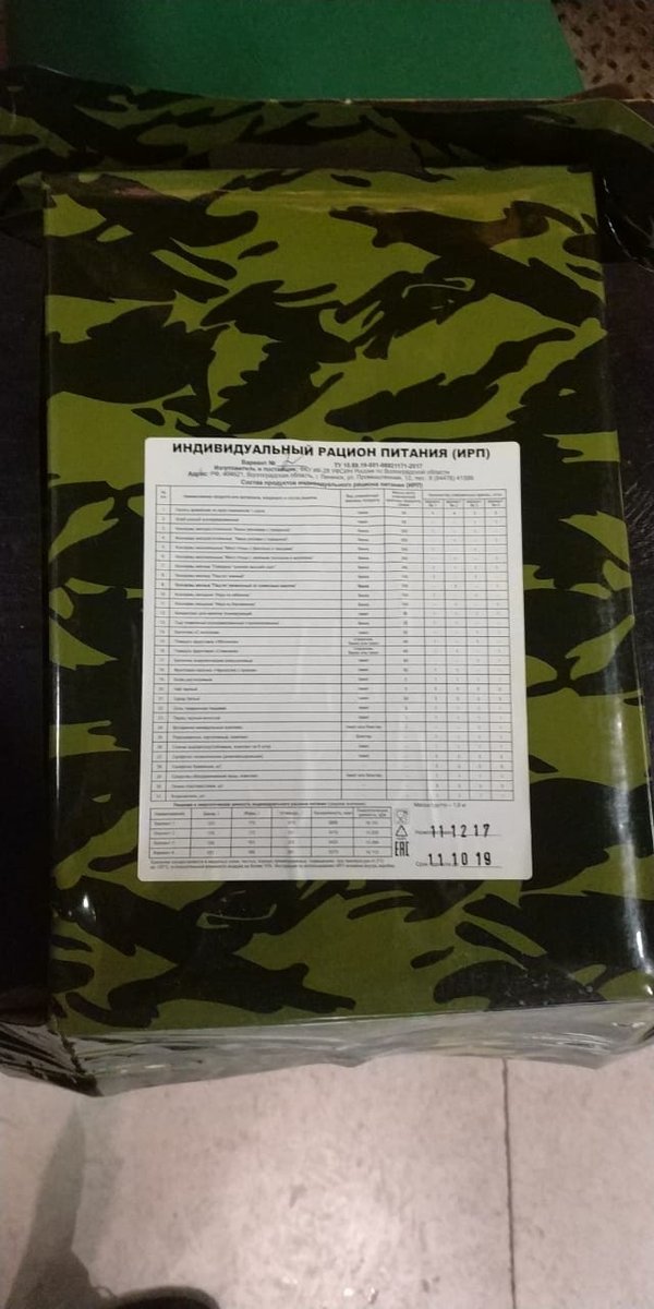 приход товара 03.01.2019 сухпайки ВС РФ по 3000тг