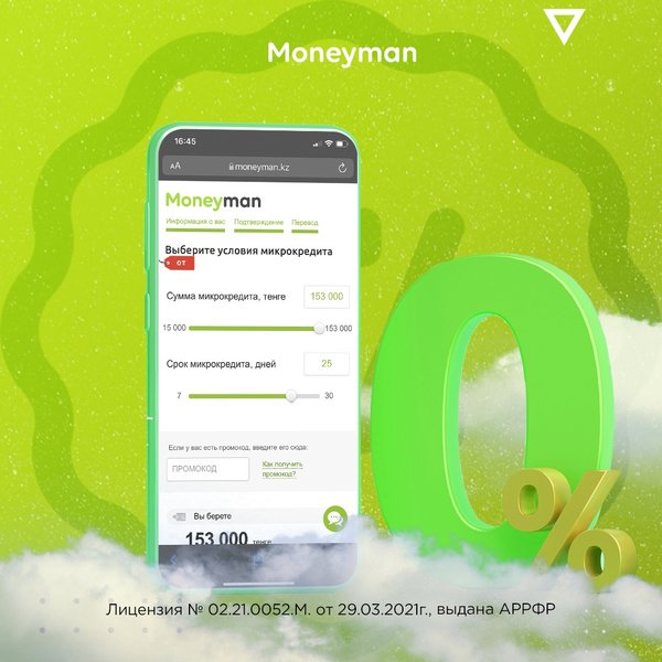 153 000 теңге тікелей картаға! Бұл ыңғайлы, жылдам және толығымен онлайн. Бүгін ММ30 промокоды бойынша 15% жеңілдікпен шағын несие алуға үлгеріңіз. ____ 153 000 тенге прямо на карту! Это удобно, быстро и полностью онлайн. Успейте оформить заявку на микрокредит сегодня со скидкой 15% по промокоду ММ30.
