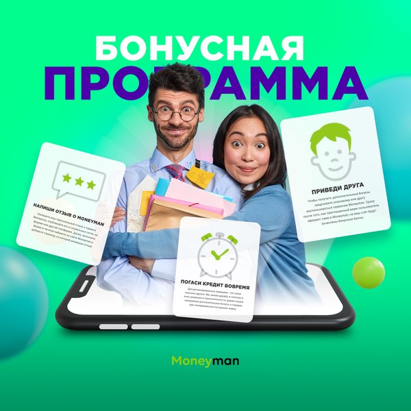 з. ⠀ Бонустар мен сыйлықтар Біз Сізді біздің moneyman.kz сайтымызда көруге әрқашанда қуаныштымыз, және сондықтан да біз біздің тұрақты клиенттеріміз үшін бонустар жүйесін ойлап таптық. Сіз бұл бонустарды шағыннесиелендіру бойынша одан да тиімді шарттарын алу үшін moneyman.kz -тен онлайн пайдалана аласыз. ____________________________ ⠀ ТОП причин выбрать Moneyman: ⠀ Лояльные процентные ставки Мы полностью автоматизировали весь процесс выдачи микрокредита. Таким образом мы сократили расходы, а значит могли обеспечить максимально выгодные микрокредиты для вас. ⠀ Отсутствие комиссий Вы платите ровно столько, сколько указано в форме подачи микрокредита. Мы не облагаем вас дополнительными «скрытыми» комиссиями. Все честно, прозрачно и открыто. ⠀ Без финансового обеспечения Мы доверяем Вам и не требуем подтверждения вашей платежеспособности в виде залога и поручителей. ⠀ Бонусы и подарки Мы всегда рады видеть Вас на нашем сайте moneyman.kz, и поэтому мы разработали систему бонусов для наших постоянных клиентов. Вы можете воспользоваться этими бонусами для получения еще более выгодных условий по микрокредитованию онлайн от moneyman.kz.