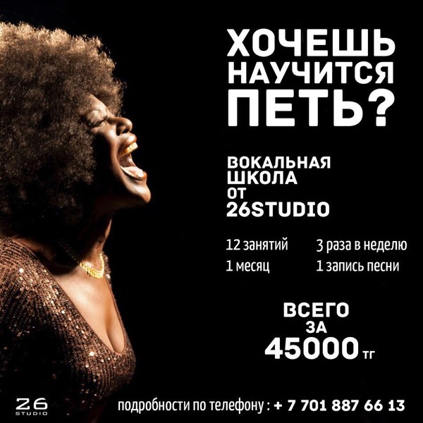 Вам нужно выступить на публике, но вы очень волнуетесь? У Вас уже есть текст песни, но нет аранжировки? У Вас есть мелодия, но нет текста? Не переживайте, опытная и профессиональная медиа студия 26Studio с большим энтузиазмом поможет Вам в любых творческих начинаниях! Остались вопросы? Звоните нам: Insta: @26_studio Youtube: