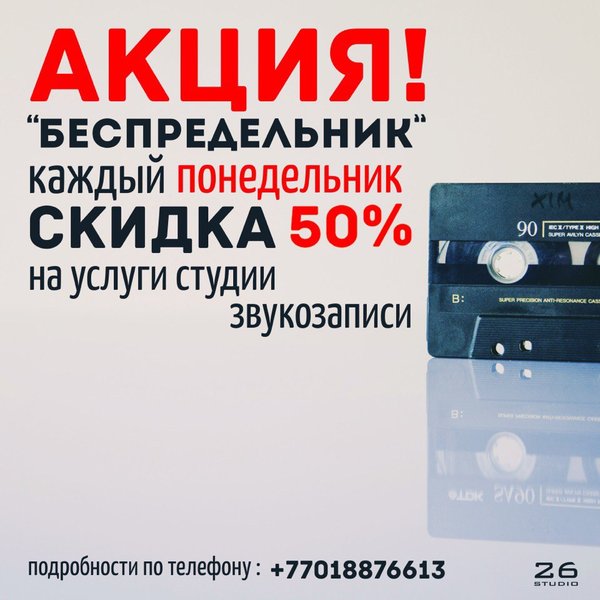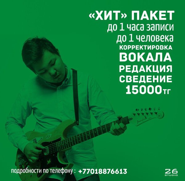 Фархат Юсупов (26.10.2015): Здравствуйте дорогие друзья! У нас отличные новости! До 5 ноября скидки на звукозапись 30%!!!!!!!! Успейте забронировать время! Телефон: Instagram: @26_studio