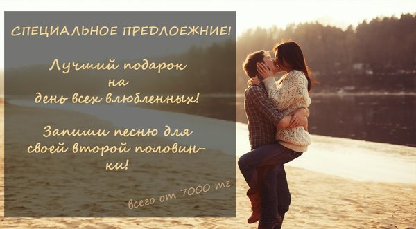 Здравствуйте дорогие друзья! СПЕЦИАЛЬНОЕ ПРЕДЛОЖЕНИЕ! Запиши песню и подари на день всех влюбленных! Самый лучший подарок для своей второй половинки! По всем вопросам: recordskz@gmail.com