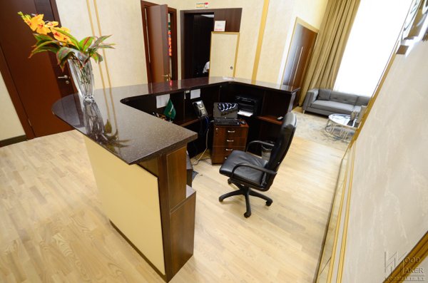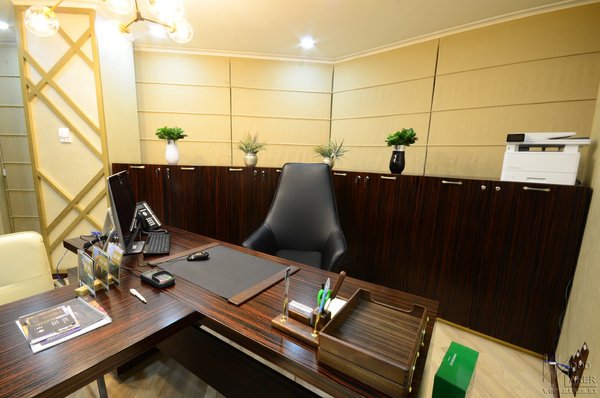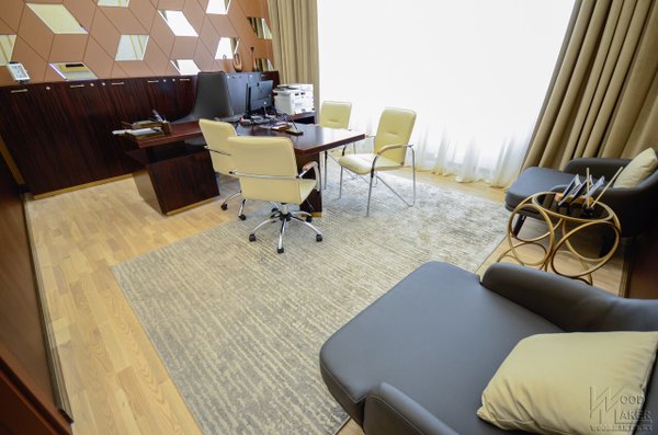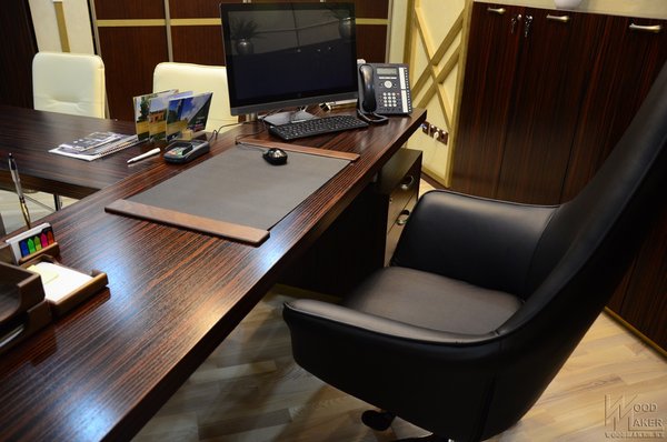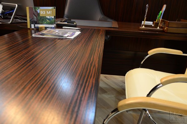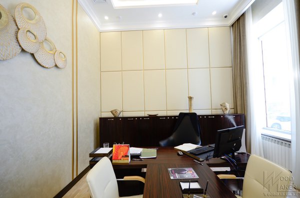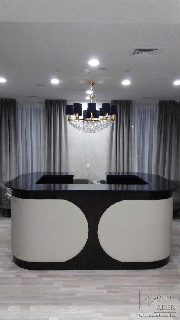 Дубль два, единый стиль выдержан Деловой Ресепшн для второго офиса готов Красивый не правда ли? С обтянутыми элементами ЭКО кожи При изготовлении использовались следующие материалы: Шпон Эбони, столешница искусственный камень Grandex, декоративные вставки из Экокожи, ЛДСП Kronospan. Спешите отправить свой проект для расчета! Наш адрес г.Алматы пр. Райымбека 193а Телефон Ирина Мы изготавливаем: Межкомнатные двери Деревянные лестницы Шкафы Кухонные гарнитуры Декоративные Панели мебельдляофиса