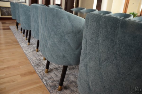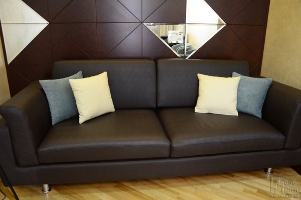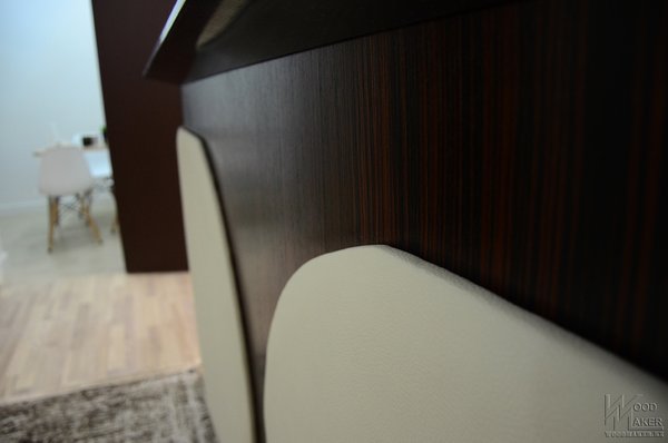 Панели для ресепшна имеют сложную форму! Они гнутые, на лицевой стороне выведены радиуса, и при всем этом панели обтянуты кожей