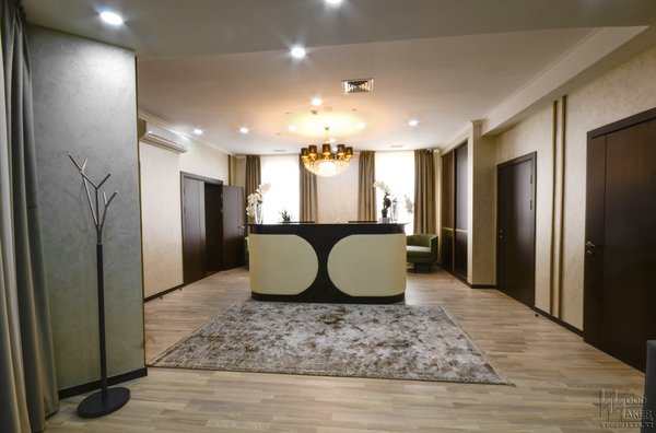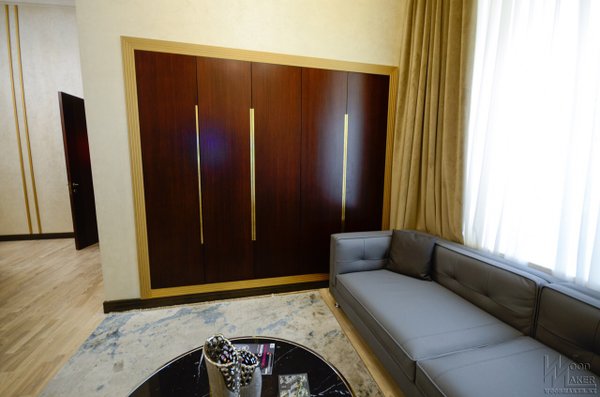 Встроенный шкаф для клиентов в зоне ресепш Когда нас окружают роскошные вещи, рабочие дела проходят незаметно При изготовлении использовались следующие материалы: Корпус ЛДСП Kronospan, фасады МДФ, шпон зебрано, вставки из латуни, лакокрасочные материалы производство Италия. Спешите отправить свой проект для расчета! Наш адрес г.Алматы пр. Райымбека 193а Телефон Ирина Мы изготавливаем: Межкомнатные двери Деревянные лестницы Шкафы Кухонные гарнитуры Декоративные Панели