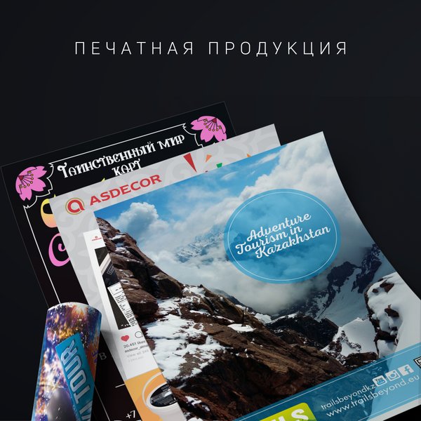: книги, журналы, каталоги, брошюры, буклеты. • Арт-проекты: принты для футболок, оформление музыкальных альбомов • Пригласительные, открытки, конверты • Наружная реклама. • Свадебная канцелярия а также дизайн любой рекламной продукции. ____________________________ Наши Контакты: dbstudiokz@mail.ru