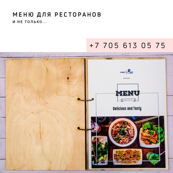 Наша компания предлагает услуги по изготовлению меню для кафе и ресторанов – от стандартных до эксклюзивных вариантов, от миниатюрных изданий до больших форматов. ________________________________________ Наши Контакты: dbstudiokz@mail.ru ________________________________________