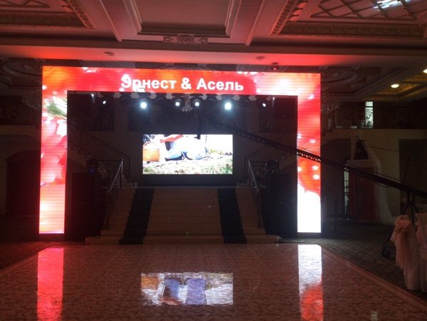 В конце 2014 года. нами был поставлен экран P5, в ресторан «Диана». г. Алматы Размеры экрана составили: 3м. длина * 2м. высота. Модель экрана: p5.