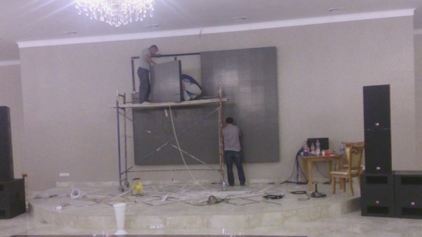 Экран в ресторане «Тулпар» Поставка LED экрана p5 в ресторан «Тулпар» г. Алматы. Размеры экрана составили: 1 экран. 3,84м. длина * 2,56 м. высота., 2-ой экран арка 9,8 кв.м. Модель экрана: p5. Размер кабинетов: 640мм.*640мм. Объект был сдан в мае 2015 г.