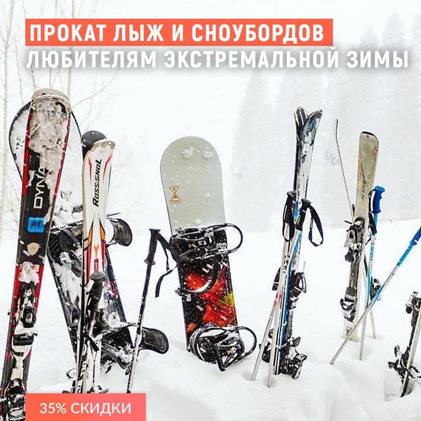 Магазин спортивных товаров предлагает скидки до 34% на прокат лыж и сноубордов любителям экстремальной зимы!