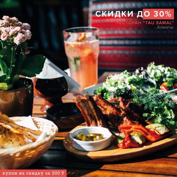 Последние несколько месяцев мы все находимся в напряжённом состоянии. А ведь долгое пребывание в дурном расположении духа может негативно отразиться на нашем здоровье. Поэтому мы предлагаем Вам немного расслабиться в летнем ресторане «Тау-Самал». «Тау-Самал» находится на территории гостиницы «Rahat Palace» под открытым небом, окруженный зеленью и цветами. А купон стоимостью 300 тенге предоставляет скидку 30% на всё меню (кроме бизнес-ланча). Там Вы сможете насладиться прохладительными напитками и блюдами, приготовленными в печи на дровах… — Читать дальше