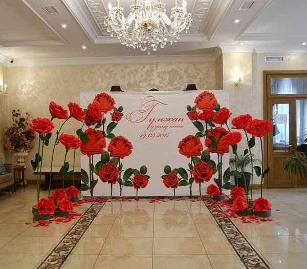 Пресс стена с ростовыми цветами для Арины Almaty, Kazakhstan