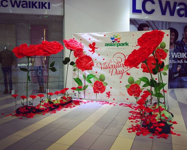 Оформление ко Дню Святого Валентина ТЦ Азия парк Almaty, Kazakhstan
