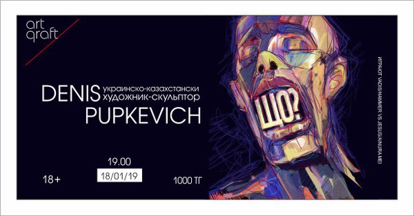 ШО? (17.01.2019): ШО? ⠀ и когда? и где? и кто? ⠀ -выставка-перфоманс -пятница, 18 января в 19:00 -ARTQRAFT, Валиханова 27 -украинско-казахстанский художник и скульптор – Денис Пупкевич @denis_pupkevich ⠀ а как? – выставка скульпутр, картин и инсталляций Дениса Пупкевича, а также музыкальный перформанс от: Ainura Mei Vadis Hammerhead vs. Jesus ⠀ и шо? вход: 1000 + welcome drink так что, ждем! ⠀ (18+)