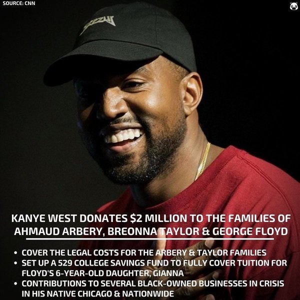 TMZ сообщил о том, что Kanye West создал фонд поддержки дочери Джорджа Флойда для ее будущего обучения в колледже и внёс пожертвования на 2 миллиона долларов.