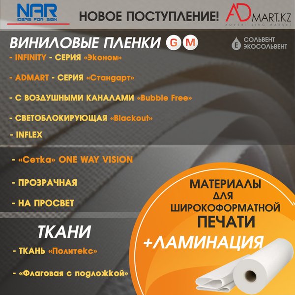 Долгожданное поступление материалов для сольвентной печати! ⠀ • Пленки фирмы NAR • Светоотражающая баннерная ткань (соты) • Электростатическая виниловая пленка ⠀ Подробную информацию о товарах вы можете уточнить у наших менеджеров или на сайте Admart.kz ⠀ БЕСПЛАТНАЯ доставка по г.Алматы. ⠀ ⠀ Адреса магазинов: ⠀ Сатпаева, 90/34 переул. Казыбаева, 61а ⠀ ⠀ Телефоны: +7 (727) 312‒38‒88 +7 (727) 317‒28‒88 +7‒707‒399‒88‒88 +7‒700‒399‒88‒88