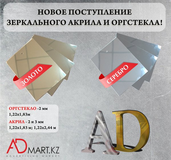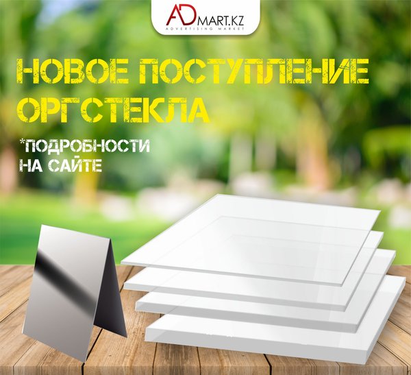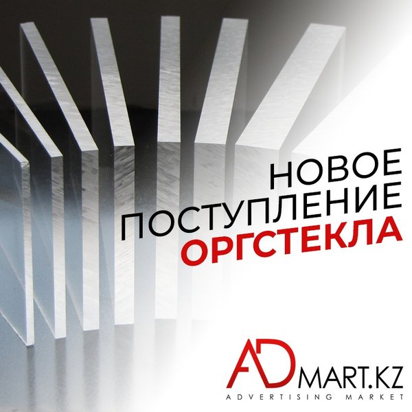 Отличные новости! В магазине ADmart.kz большое поступление оргстекла. Лучшее качество одного из самых востребованных материалов для изготовления рекламы гарантировано!