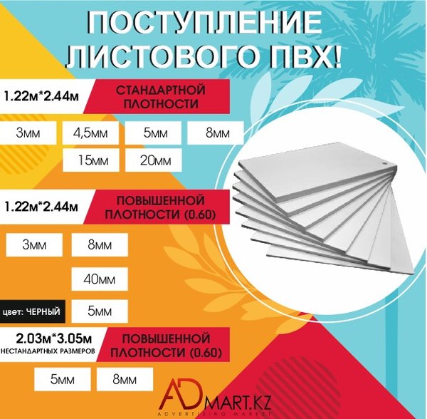 В ADmart.kz большое поступление листового ПВХ! ⠀ В наличии все толщины и размеры. ⠀ Подробную информацию о товарах вы можете уточнить у наших менеджеров или на сайте Admart.kz ⠀ БЕСПЛАТНАЯ доставка по г. Алматы. ⠀ ⠀ Адреса магазинов: ⠀ Сатпаева, 90/34 переул. Казыбаева, 61а ⠀ ⠀ Телефоны: +7 (727) 312‒38‒88 +7 (727) 317‒28‒88 +7‒707‒399‒88‒88 +7‒700‒399‒88‒88