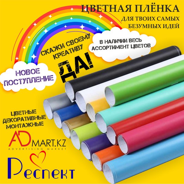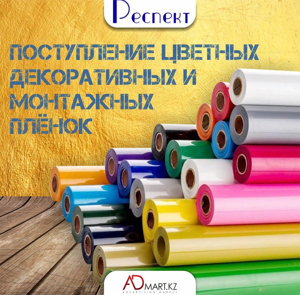 Новое поступление виниловой плёнки,ткани для печати и ламинации. Воплощайте ваши самые яркие и смелые идей вместе с нами! ___________ Более подробную информацию можно найти на нашем сайте: или уточнить у наших специалистов. ⠀ Ждем вас по адресу : ул. Сатпаева, 90/34⠀ ул. Казыбаева, 61А ⠀ Всегда рады видеть вас в нашем магазине! Желаем отличного дня и прекрасного настроения!⠀ Искренне ваш, Admart.kz